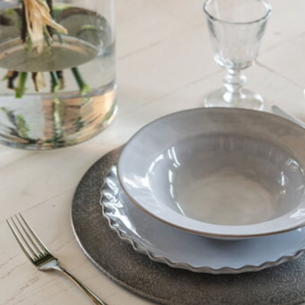 Meet the Pasta plate Complements Potter stone 25cm, the heart of the table where friends and family gather around for a moment of pure delight. Imagine winding the threads of aromatic spaghetti on this ceramic work of art, lightly kissing the edge of the plate with a fork as you take a bite of excellence. These beautiful pasta plates are not just kitchen ware; they are canvases on which your culinary creations come to life. Created in sunny Portugal, each plate combines craftsmanship with functionality – a feast for the eyes as well as the soul. Its 25 cm diameter makes it generous enough for that hearty bolognese, while its 6.5 cm height allows you to scoop generously without losing a drop of your precious sauce. And after such a flavorful experience? No worries about the dishes. This gem among plates is both dishwasher and microwave safe, so you can spend more time doing what really counts – enjoying every second at the table. For you, the foodie who doesn’t settle for ordinary, the Pasta Plate Complements Potter 25cm offers a touch of sophisticated elegance that will take your table setting to the next level. It is the perfect gift for the pasta aficionado in your life or an indulgence for yourself, because you deserve to enjoy every dinner as if it were a gourmet feast. Cheers, to unforgettable meals and the beauty of being together.