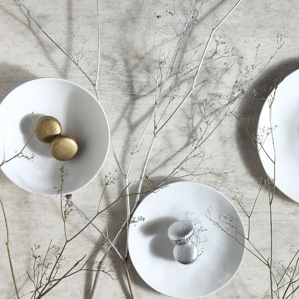 Elegant Design – A clean white finish with subtle speckled details, complementing any table setting.